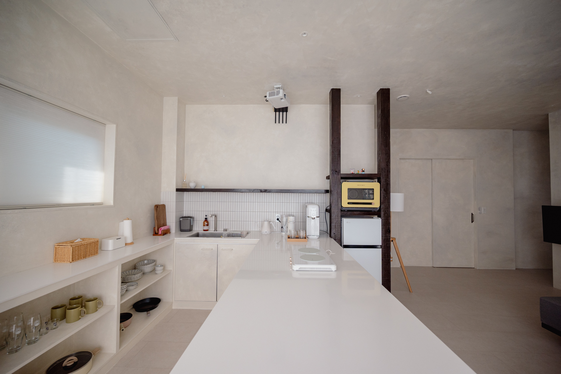 점점 비싸지는 제주도 물가로 인해, 제주여행에 합리성을 갖추고자 가성비 있는 가격과 숙소안에서 인덕션, 삼성큐커(그릴, 에어프라이어, 전자레인지, 토스터기), 캡슐커피머신과 건조기능이 포함된 드럼세탁기까지 준비되어 있어 편리성을 갖추었습니다.