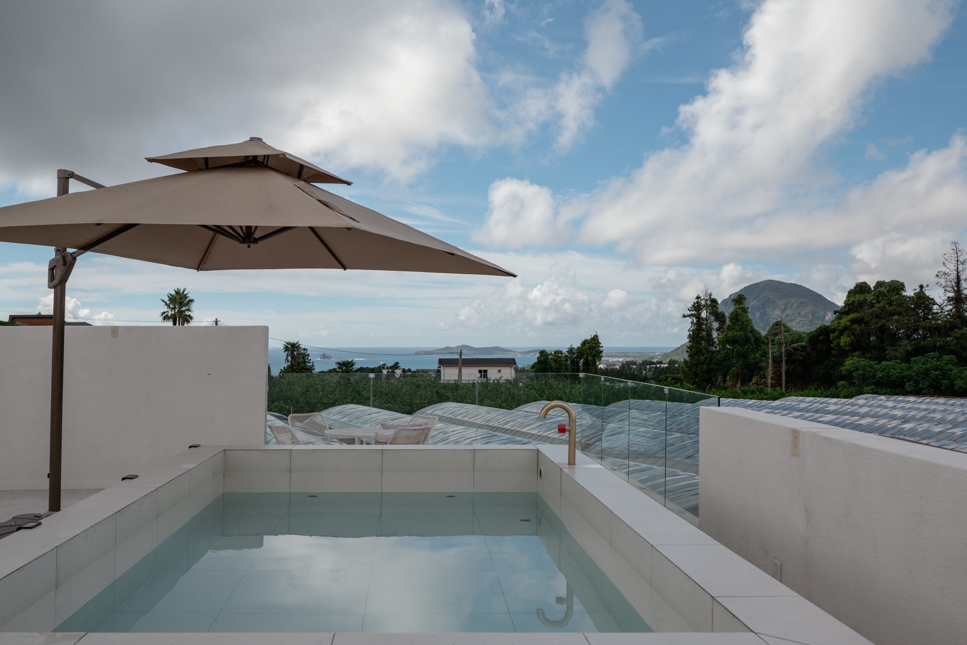 2층 테라스로 나가면, 사계절 온수 야외 자쿠지가 있고, 이곳에서 바라보른 산방산과 섬(마라도까지..)들은 최고의 뷰를 선사할 것입니다.